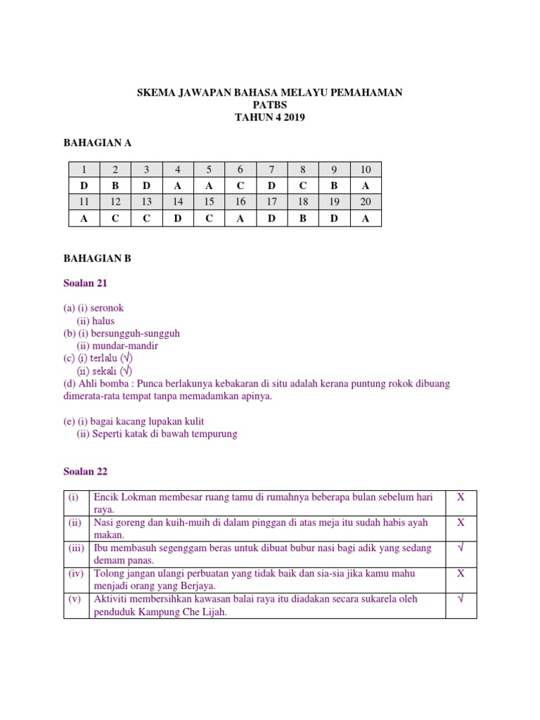 Skema Jawapan Bahasa Melayu Pemahaman Patbs 2019 Tahun 4 Pdf