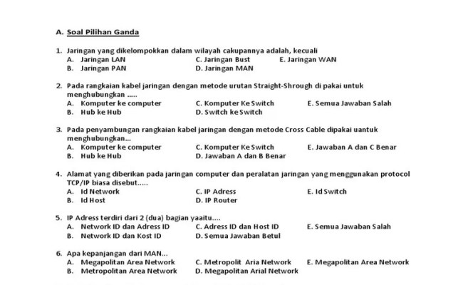 Contoh Soal Pilihan Ganda Tentang Jaringan Komputer Otosection